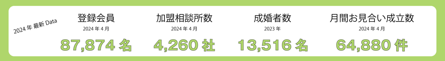 A.広島密着型結婚相談所 結まりっじは、IBJの加盟店です。IBJに加盟する全国3,860社以上(2023年5月現在)の相談所ネットワークを活かして、国内最大登録数83,000名以上(2023年5月現在)の会員様の中から、ご自身で検索システムを利用してお探しいただく「お相手検索」が大きな強みです。